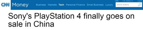CNN用“索尼PS4终于在中国开售”为题