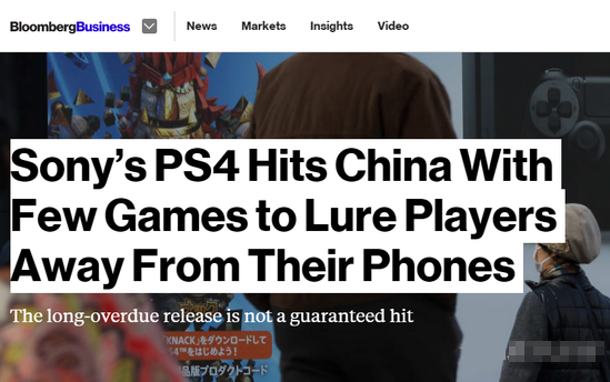 彭博社的标题则更具倾向性“索尼PS4进军中国,指望用几款游戏诱惑玩家远离他们的手机”